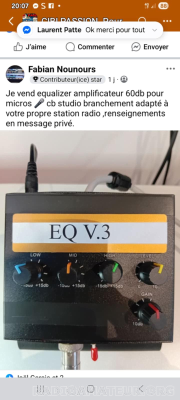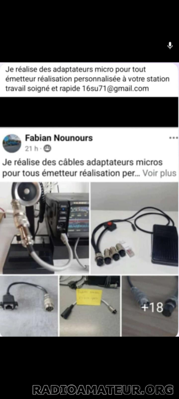 Je réalise des adaptateurs micros personnalisés à votre station,montages micro studio pédale etc... Je vends des équalizers 3 bandes amplification 60db adaptables sur tout émetteurs