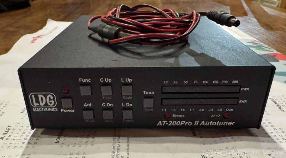 Superbe boite de couplage automatique LDG AT 200 pro II plage de fréquence accordable : 1.8 à 54 MHz Puissance admissible : de 5 à 250 W, 100W sur le 6m OM non-fumeur. Nombre de mémoires : 16000 Gamme d’impédance : de 6 à 1000 ohms Type d’antenne : Dipôles, Vertical, Beams, antennes alimentées par le coax Equipé de 2 bargraphes pour la puissance et le R.O.S. Dimensions : 220 x 155 x 50 mm