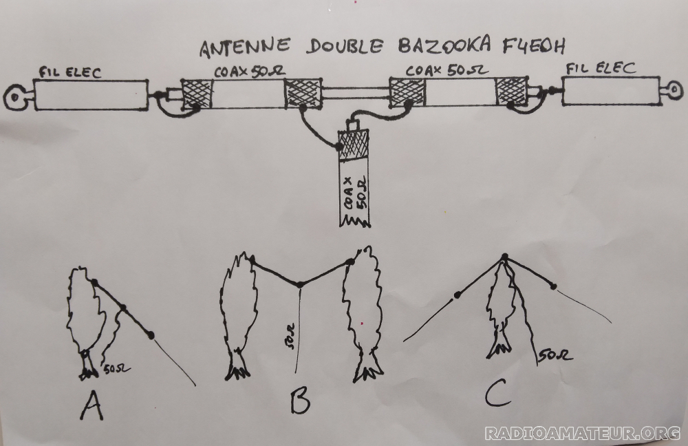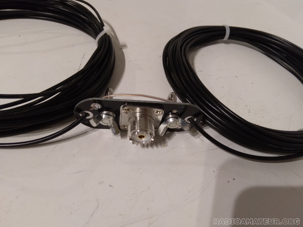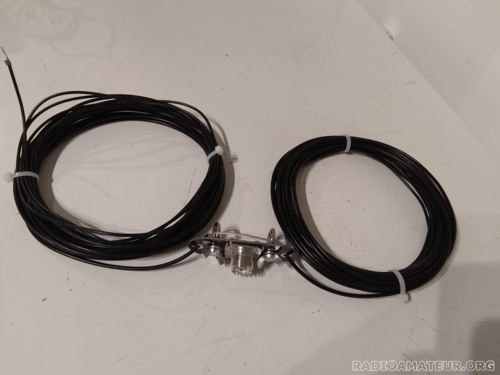 Antenne filaire symétrique double BAZOOKA spécialement calculée et taillée pour la bande 40m avec un rendement et une bande passante nettement supérieure au dipôle classique. La fréquence centrale est 7.120MHz la longueur totale est de 19,95 m et peut être installée en sloper (inclinée à 45°) ou horizontale en V accrochée de chaque côté à un support, ou horizontale en V inversé, avec accroche au milieu au niveau de l'isolateur. Le TOS minimum à la fréquence de résonnance (7,120MHz) sera obtenu en jouant sur l'angle entre les deux parties du dipôle, mais dans tous les cas, le TOS sera inférieur à 1,25/1 la puissance admissible est de 100 watts minimum. Livrée comme sur les photos. Longueur totale : 19,95m poids tout compris 235 grammes. Prix 43 euros