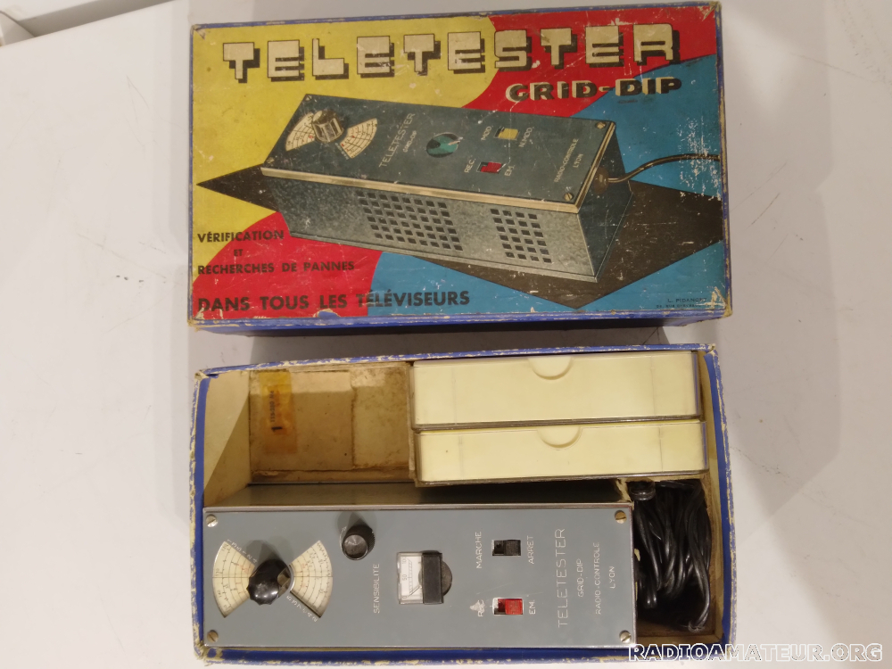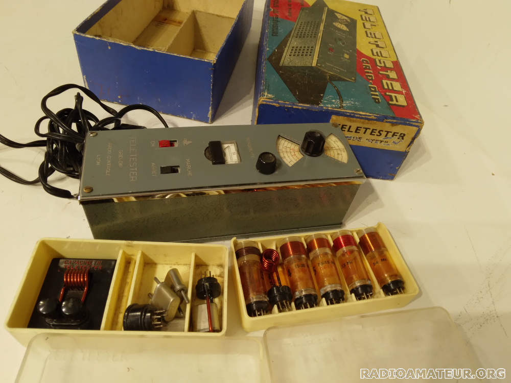 Grid dip Teletester dans sa boîte d'origine, avec ses bobines et accessoires. Fonctionne parfaitement. Prix 45 euros