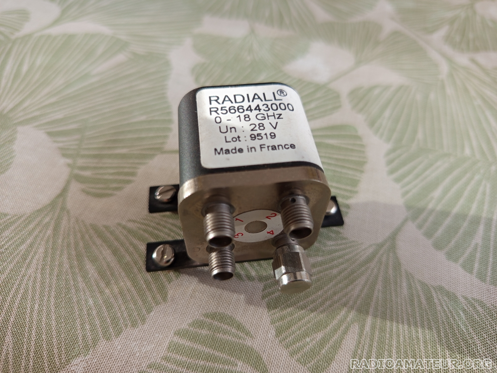 Vends relais coaxial SHF Radiall R566-443-000. Il s'agit d'un relais bistable permettant de commuter 2 signaux vers 2 voies distinctes ; il comporte des contacts auxiliaires permettant de connaitre la position de la commutation. Utilisable de 0 à 18 GHz ; tension relais 28V ; perte d'insertion < 0.5 dB ; ROS < 1.5 ; isolation > 60 dB Infos détaillées accessibles sur www.o2xygen.com/photo/R566423129/R566423129_001.pdf