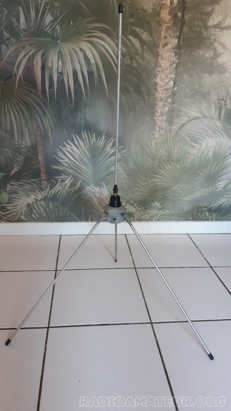 Bonjour, donne cette antenne VHF 1/4 d'onde fabrication OM (la pièce centrale est du commerce, permettant de la fixer directement sur le mat, le coax passant à l'intèrieur). Idéale pour écouter l'ISS par exemple.