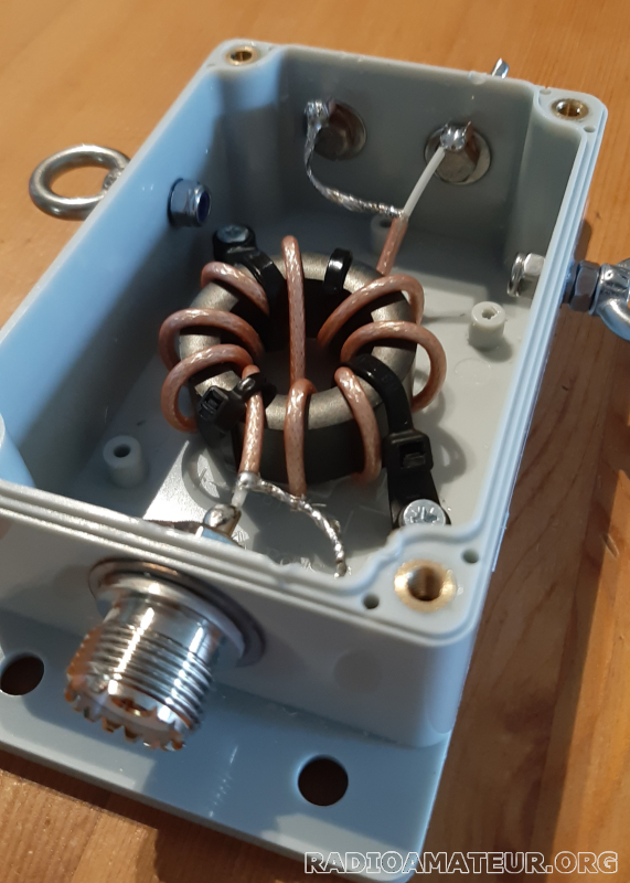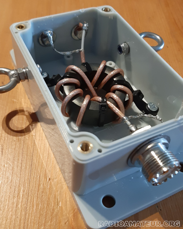 Vds balun couvrant du 160 au 10m, FT140 tore de FairRite, bobinage en RG316, oeillets latéraux (soulage la force sur les brins du dipole), entrée sur connecteur SO239 (PL femelle). Boitier 10x6cm avec trous prépercés (montage facile sur mât par ex), pour seulement 140 grammes, et jusqu'à 33dB de réjection du mode commun. Idéal pour activations portables et mono/multi-dipoles, ou même en installation fixe. Paypal préféré, port 7 euros colissimo ou 4 euros Mondial Relay.
