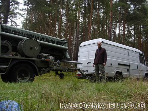 Aluminium-Mobile-Mast on 3.5 to trailer, telescopic, 25/30/36/40 m, manufactured by SALZGITTER AG in very high quality and precision, List price new € 320.000, in tested and perfectly working condition € 9900 plus transport 1,- per km, some masts available, Pylone Aluminium telescopique 25/30/35/40 m SALZGITTER SMAG ex Militaire, mis en place tres vite et simple, sur une remorque de 3500 kg-4000kg , fret 1,-/km de Luxembourg, Prix € 9900, plusieurs mats disponible et aussi des Rotors heavy duty, double et AZ/EL, Hilmar, DF9PF,