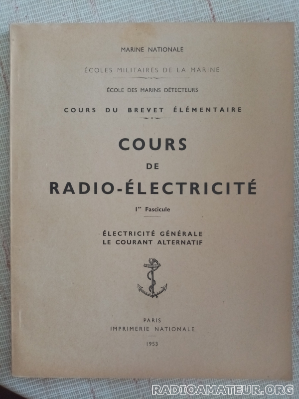 Fascicule 1 : électricité générale, le courant alternatif ; 142 p. Fascicule 2 : radioélectricité ; 119 p. Imprimerie nationale Pour les écoles militaire de la Marine ; école des marins détecteurs ; cours du brevet élémentaire. Fascicules brochés 21,1 x 26,5 cm Très bon état. Livraison par la Poste, Mondial Relay ou Shop2Shop. Remise en main propre possible sur Paris (13e).