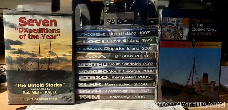 À vendre en parfait état, 10 DVD de la collection dxvideo.com de 9V1YC. Le détail est le suivant : - 1997 VK0IR Heard Island ; - 1999 ZL9CI Campbell Island ; - 2000 FO0AAA Clipperton Island ; Bouthan A52A - 2002 VP8THU South Sandwich ; South Georgia VP8GEO - 2005 FT5XO Kerguelen ; - 2006 ZL8R Kermadec ; - 2007 BS7H Scarborough Reef ; - 2009 K4M Midway. En cadeau, les DVD "Seven DXpeditions of the Year", par Bob Allphin, K4UEE et "The story of the Queen Mary and W6RO", par l'ARRL. ATTENTION : la plupart de ces DVD sont au format NTSC. À noter que ces vidéos sont disponibles en streaming sur des sites comme Vimeo par exemple. À prendre sur place dans le département 50 ou livraison Mondial Relay en sus.