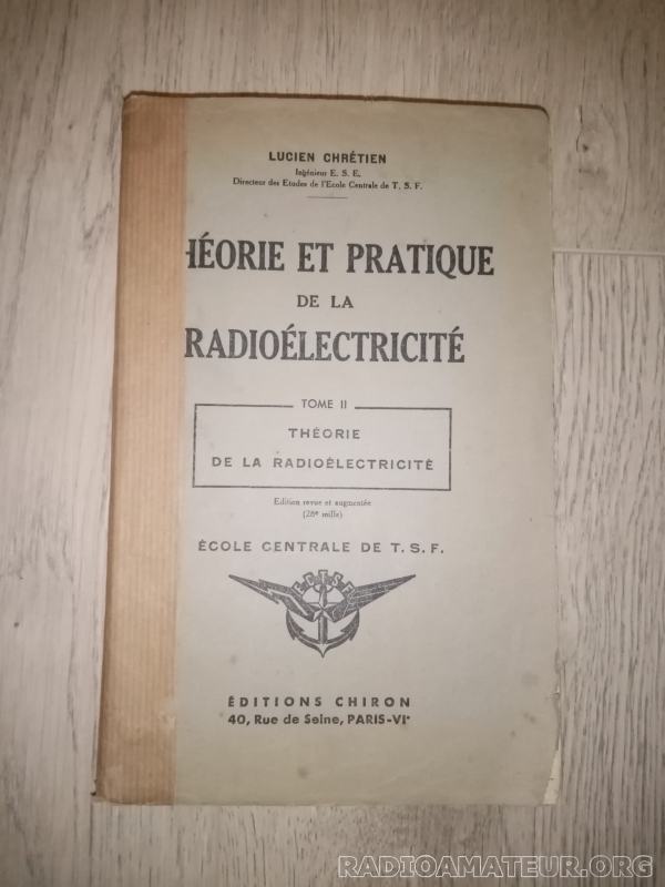 Tome II - Théorie de la radioélectricité par Lucien Chrétien 2e édition, revue et augmentée, 1951 408 pages Tranche réparée 450 g 13,6 x 22,4 x 2,7 cm Envoi par la Poste, Mondial Relay ou Shop2Shop. Remise en main propre possible sur Paris 13e.
