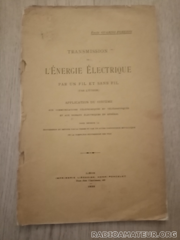 Par Emile Guarini-Foresio Application du système aux communications téléphoniques et télégraphiques et aux signaux électriques en général pour obtenir la suppression du retour par la terre ou par un autre conducteur métallique ou la complète suppression des fils Liège - 1899 Essai physique qui théorise la radio avant que le mot n'existe, et projette (en 1899) la diffusion d'énergie par l'éther... Un autre monde ! Couverture endommagée, pages intérieures plutôt en bon état 50 pages 105 g 15,8 x 24,2 cm Envoi par la Poste, Mondial Relay ou Shop2Shop. Remise en mains prepres sur Paris 13e (Olympiades).