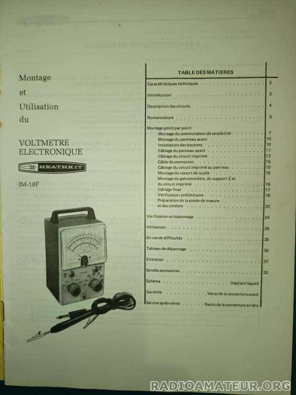 Vends documentation originale du voltmètre électronique Heathkit IM-18F avec schéma - Paypal possible - Envoi via Mondial Relay - 73' Alain.
