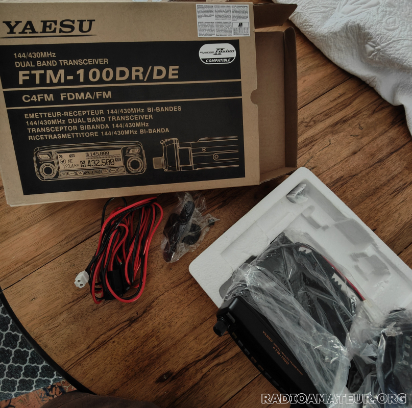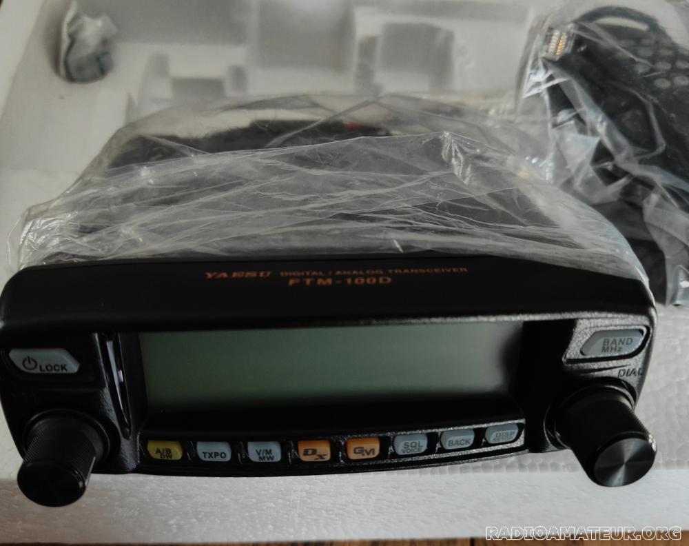 Mobile bi bande VHF UHF FM C4FM Yaesu FTM-100DR/DE d'occasion. Fréquence émission VHF : 144 à 146 MHz et UHF 430 - 440 MHz. Grand écran et façade détachable Livré avec façade détachable, un microphone, un étrier MMB-36, une fixation pour façade, un cordon 3m pour déport de façade, un cordon d'alimentation 13.5v avec fusibles, un cordon ordinateur SCU20, un adaptateur stéréo/mono, manuel d'utilisation. en parfait état peu servi, cause double emploi