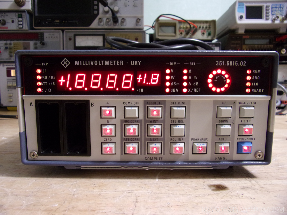 Bonjour je vends un millivoltmètre et plus URY (mesures en V, W, dBm, dBV). C'est un URV5 militarisé et d'excellente qualité, celui-ci vient de la Bundeswher, il est en excellent état. Il fonctionne parfaitement et est muni de l'option B2, qui permet de sortir la valeur mesurée sous forme d'une tension continue proportionnelle à la mesure. Le prix est ferme et le port à votre charge, emballage soigné en cas d'expédition. Règlement par Paypal, chèque ou virement bancaire, espèce en cas d'enlèvement sur place. Bonnes 73's. Bruno, F1HDQ.