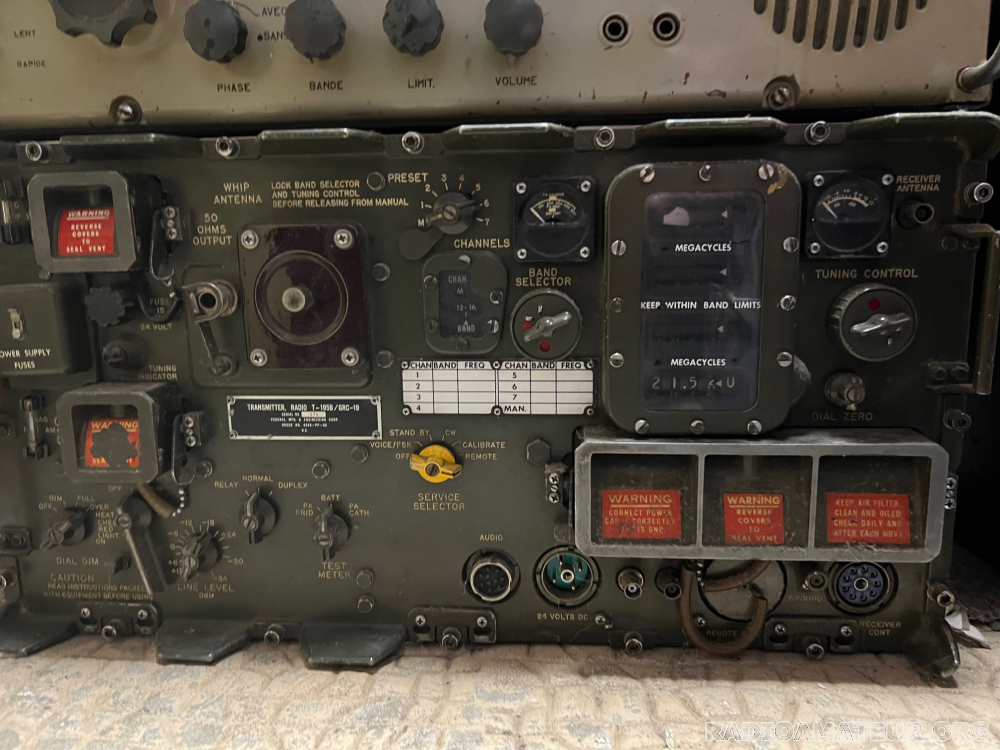 Vends émetteur T195B ANGRC19, 1 à 20MHz AM/CW/FSK 100W bon état, complet d'origine, non modifié, mais non testé. Appareil très rare à prendre sur place en IdF.